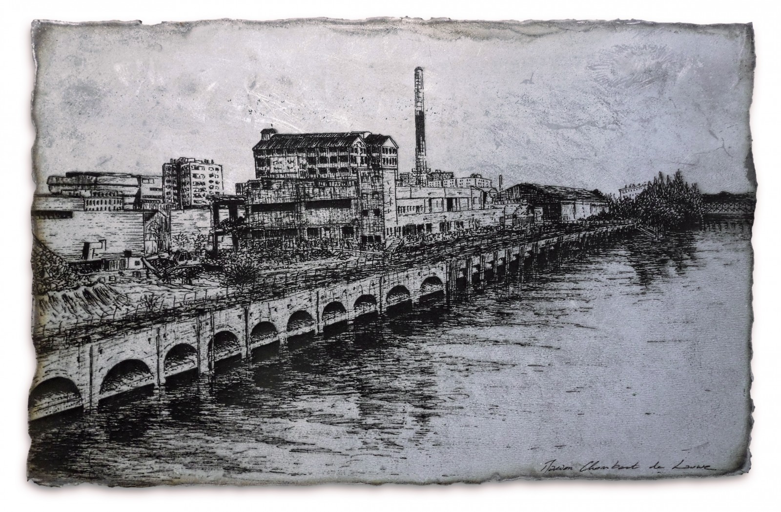 Gravure à la découpe laser à partir d'un dessin à l'encre.